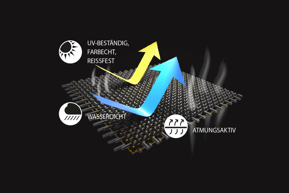 Aukštos kokybės poliesterio uždangalams Enders griliams su PU danga. Atsparus plyšimui, UV spinduliams ir vandeniui.
