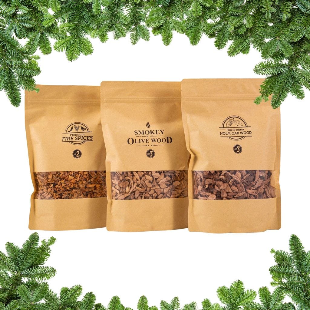 Smokey Olive Wood dovanų rinkinys su alyvmedžio lentelėmis kepimui ir drožlėmis rūkymui