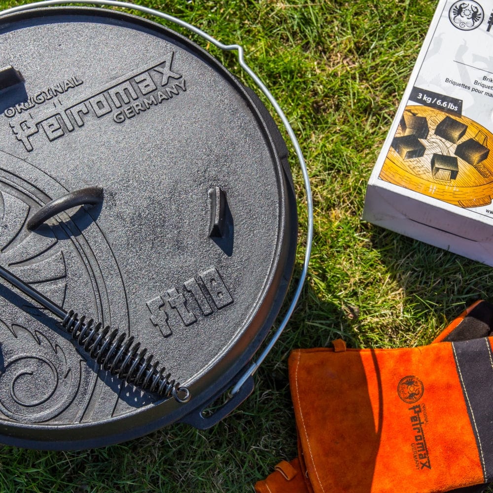 The PETROMAX FT18 cast-iron boiler is ideal for all kinds of leisure activities in the garden, on a campsite or similar.