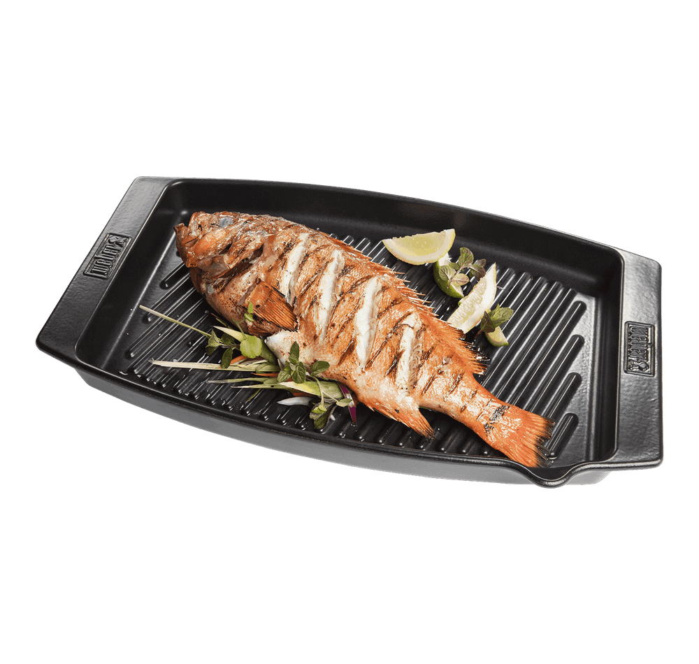 Ceramic frying pan ideal for grilling and serving fish, meat and vegetable dishes. They will show the marks left by roasting - the grill pattern.
