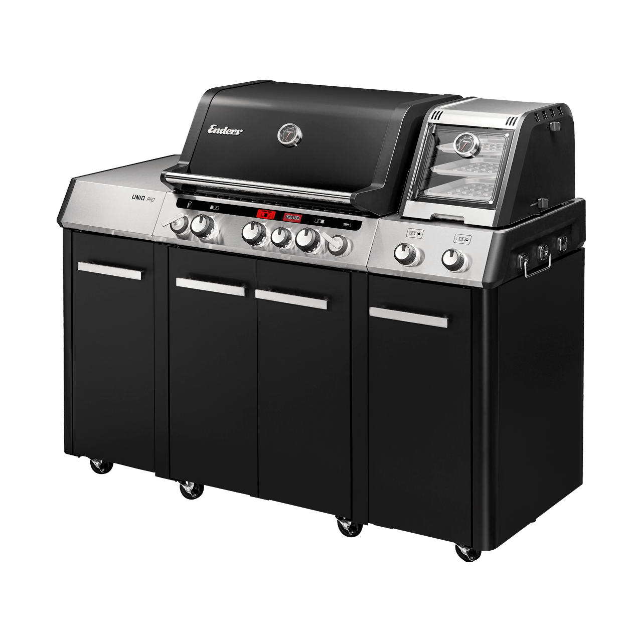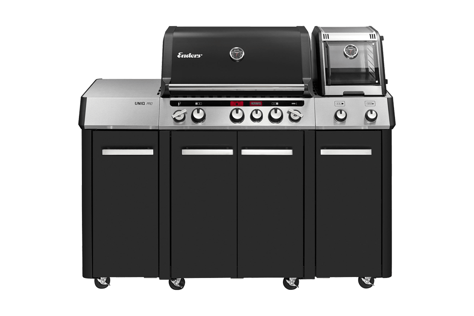 Enders Uniq Pro 3 Iko Kitchen Cruster Gas Grill with Turbo Zone and Side Oven, Black/Steel Colours