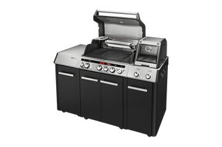 Robust and durable cast iron cooking grates, an angle and height adjustable infrared burner, a side oven, roomy and convenient drawers to keep your essential grilling tools close by.