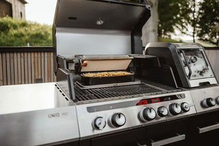 SWITCH GRID™: enamelled cast grates offer a variety of grilling options