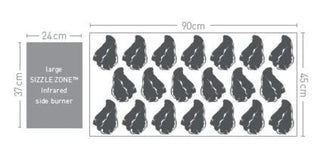 - The Sizzle Zone side burner is an infrared ceramic gas burner for searing steaks at 800 degrees. "The Sizzle Zone burner has a cooking surface of 24 x 37 cm.