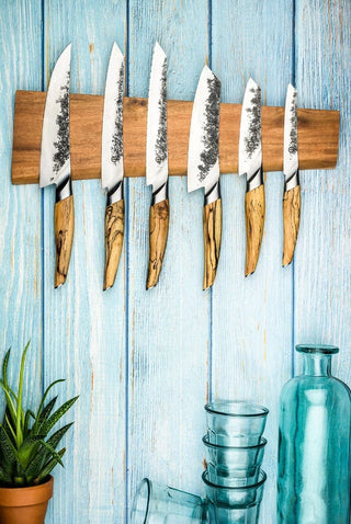 Like every knife in the KATAI COLLECTION, the handle is made of olive root, filled with a special, robust composite that resists mechanical damage. Each one is extremely comfortable to use: it tapers towards the end, so that it simply "sticks" to your hand.