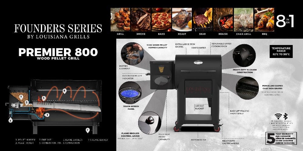 LOUISIANA GRILLS' American-made FOUNDERS series, the PREMIER line of wood pellet grills, offers years of cutting-edge pellet experience for grilling food.