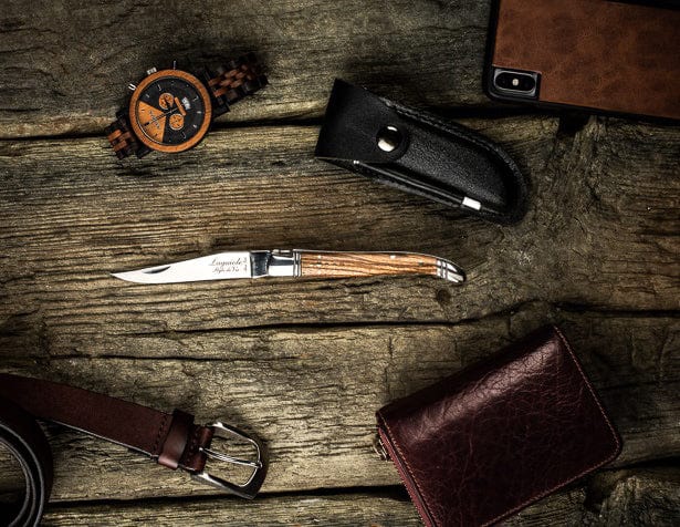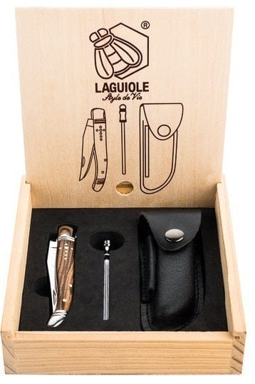 This way you have a pocket knife and a sharpening steel in one place, and a linerą. The set includes a luxury wooden gift box.