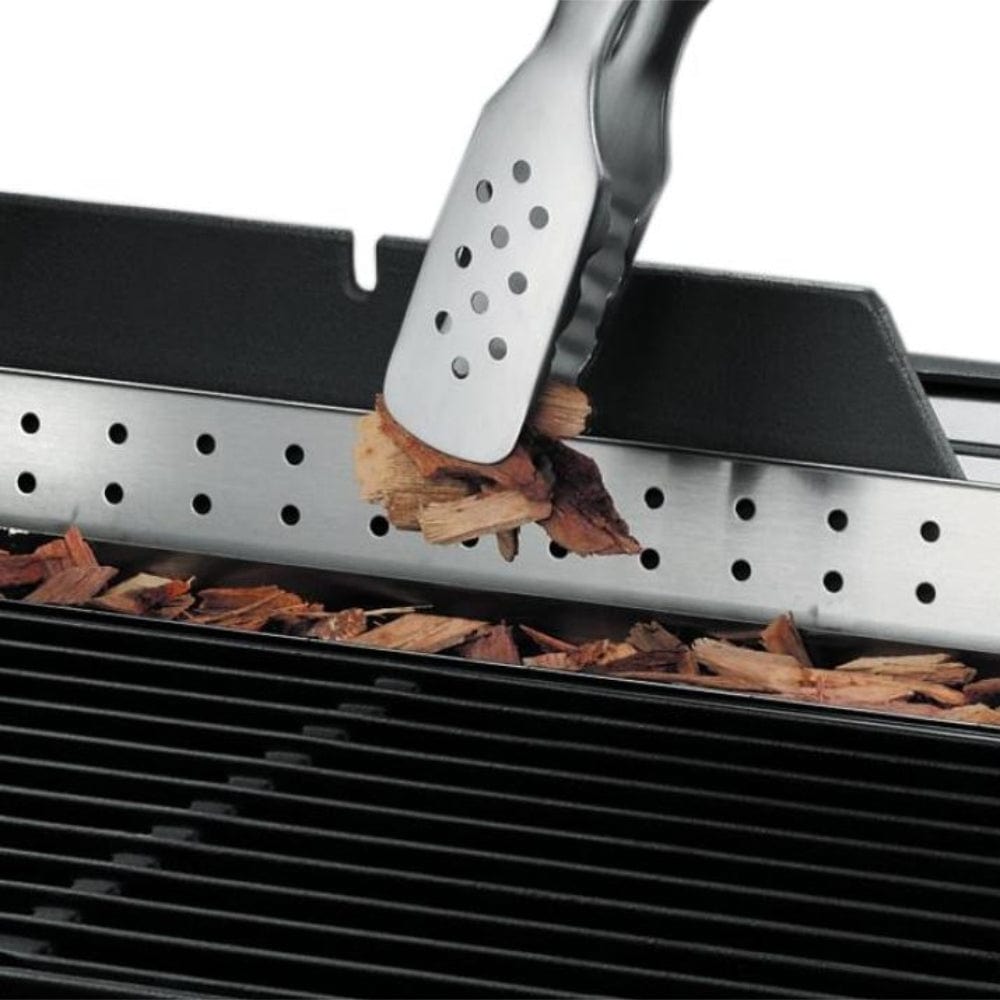 WEBER Seafood Wood Chip Mix can be used in combination with a smoking box or smoking cylinder. The WEBER Seafood Wood Chip Mix, soaked in water, should be placed directly on the embers or coals.