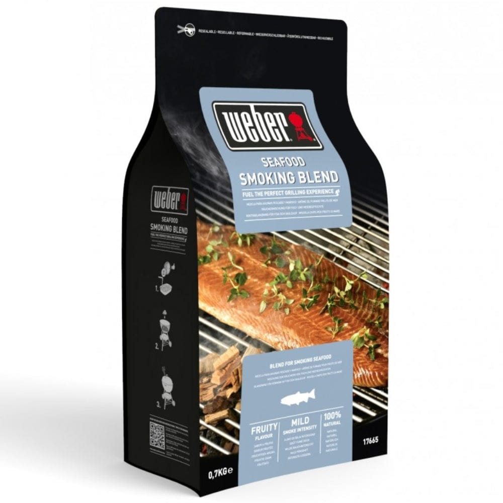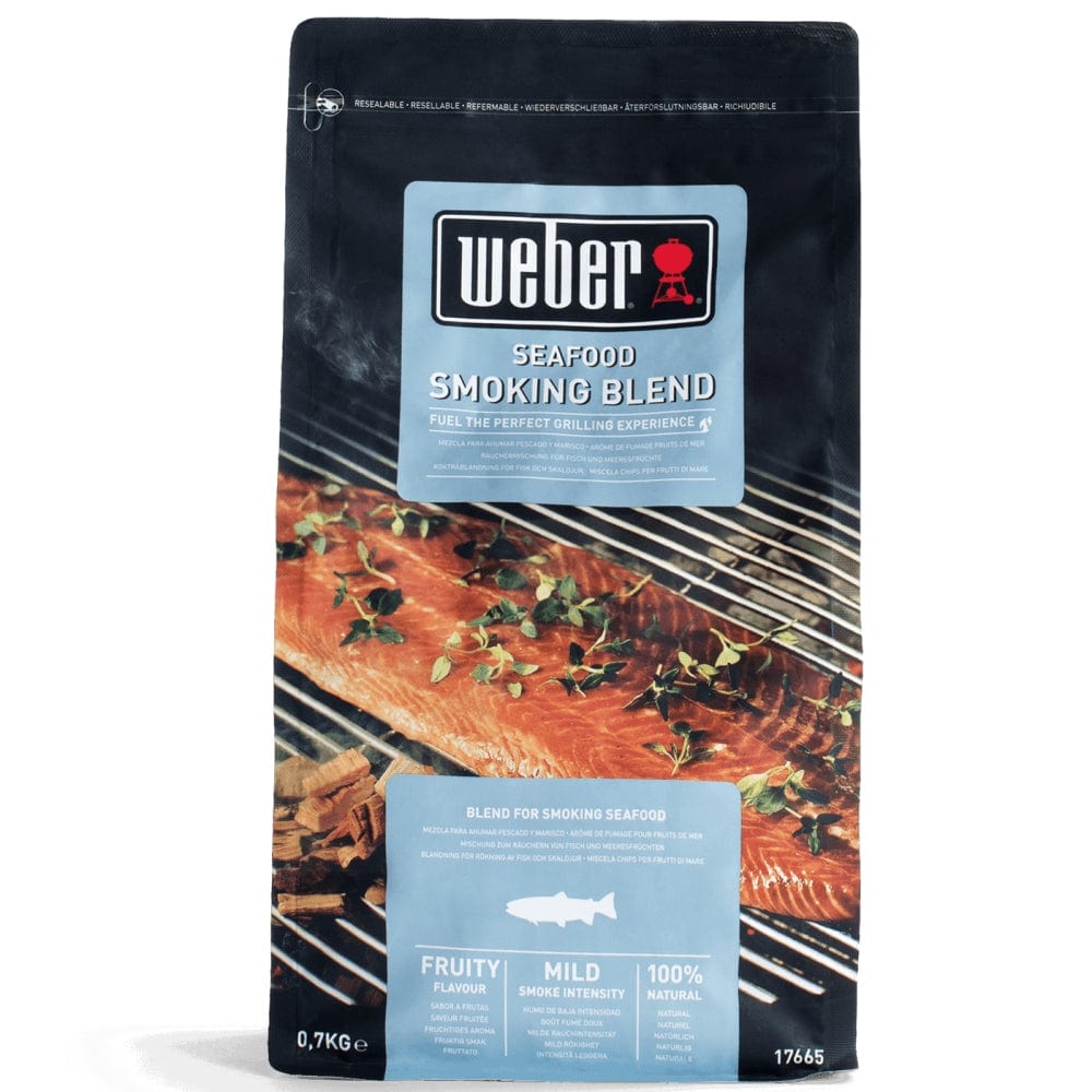 The WEBER Seafood Wood Chip Mix is made from hardwood and fruit chips and has a mild, fruity aroma and is best suited for smoking salmon, mackerel, prawns and other seafood.