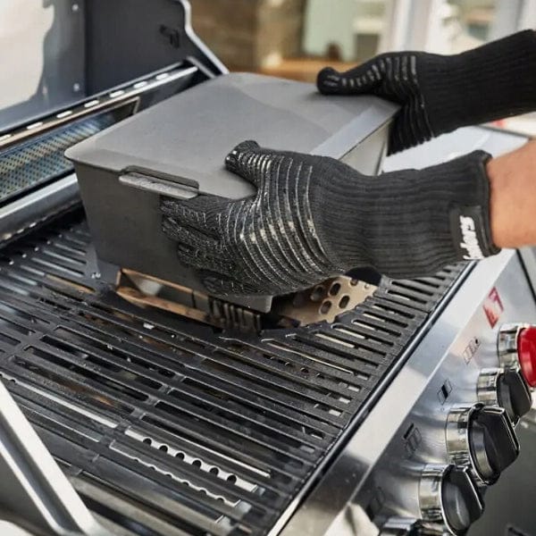 Aukščiausios kokybės, karščiui atsparios pirštinės su silikoniniu sukibimą gerinančiu raštu delno pusėje neabejotinai pravers kiekvienam grilio meistrui.