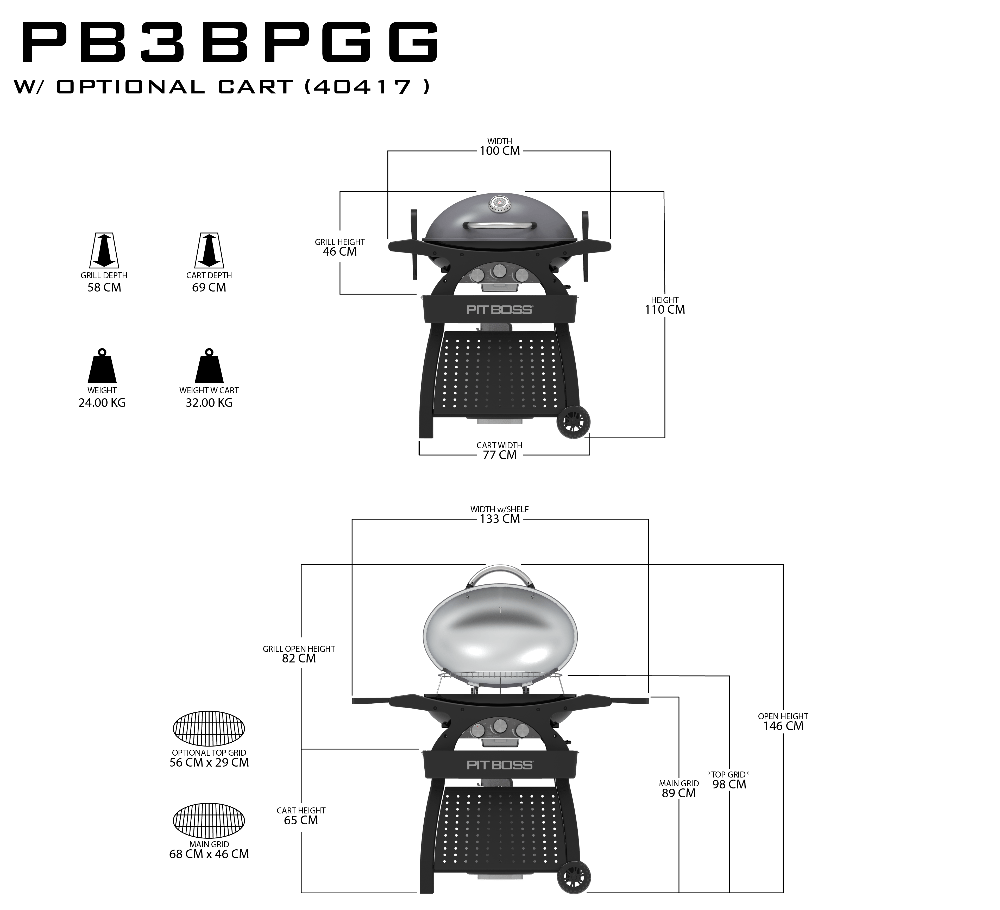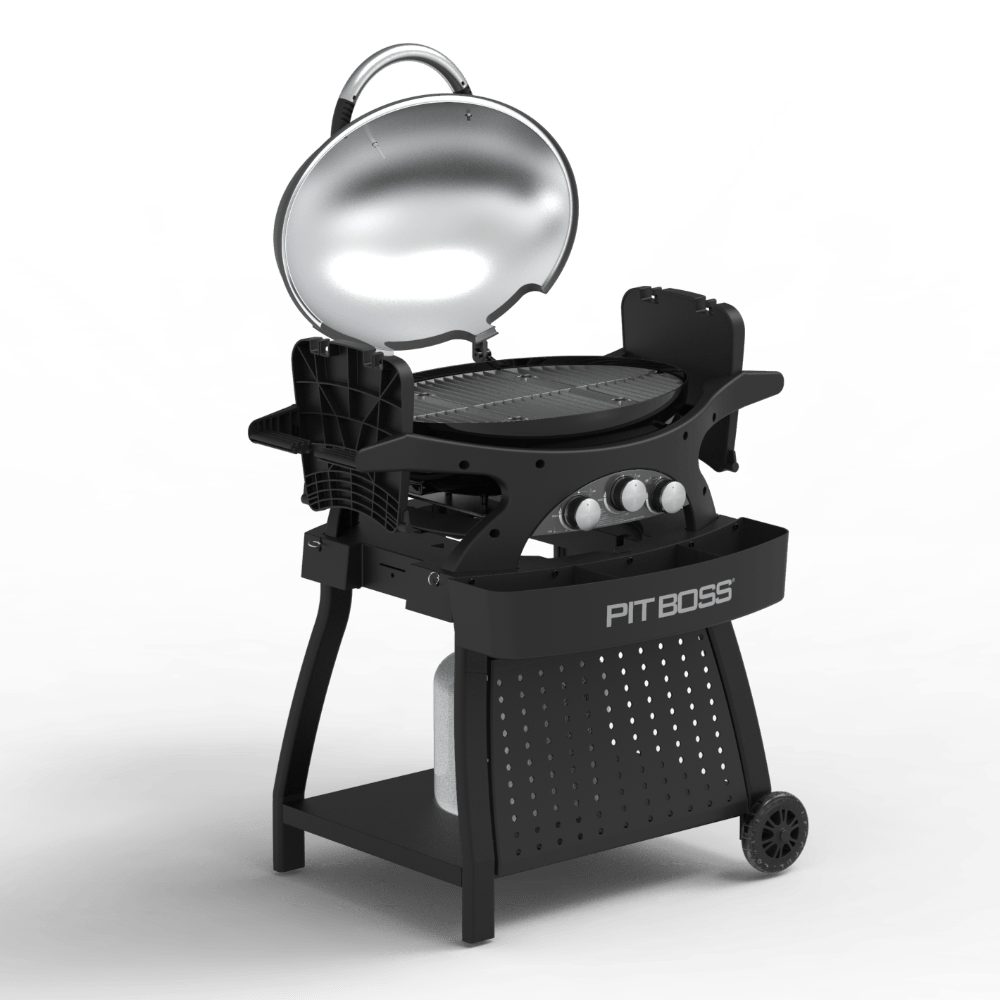 Täiendage oma kaasaskantavat PIT BOSS Sportsman 3 gaasigrilli stiilse käruga, mis pakub lihtsamat liikuvust ja lisaruumi toodete, maitseainete ja tööriistade hoidmiseks.