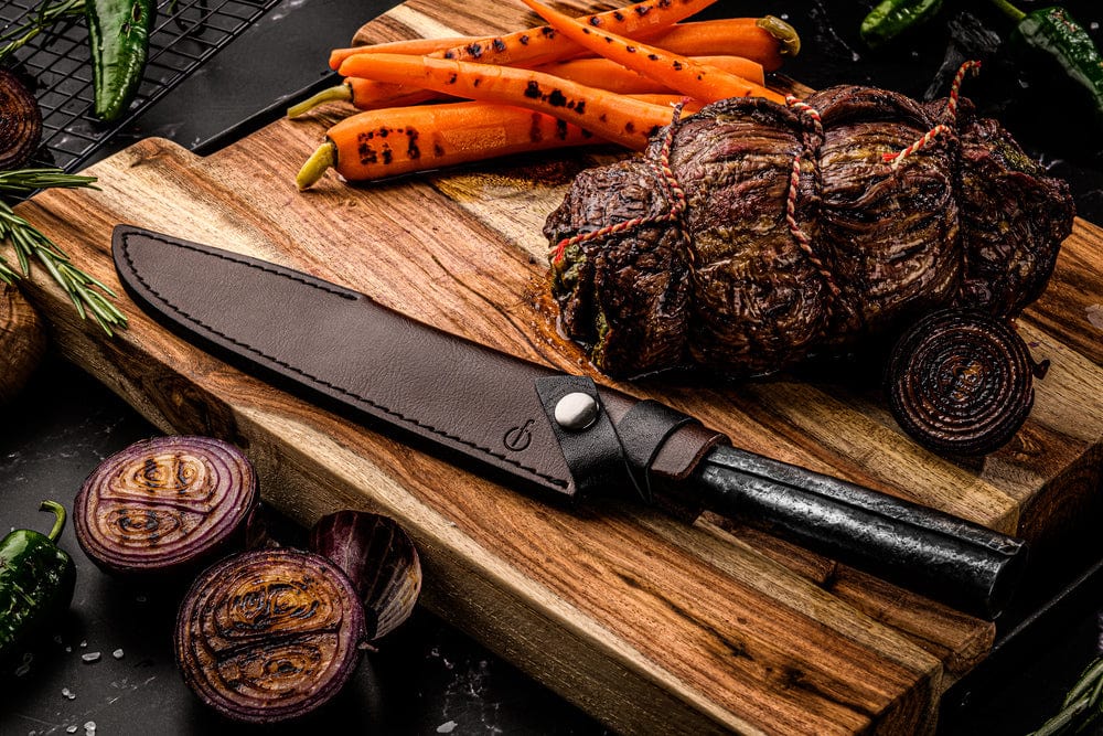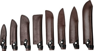 Ādas maksts Leather Forged Carving ir paredzēts japāņu tērauda virtuves nažiem STYLE DE VIE Forged Carving modelim Intense, Brute, Olive sērijās.
