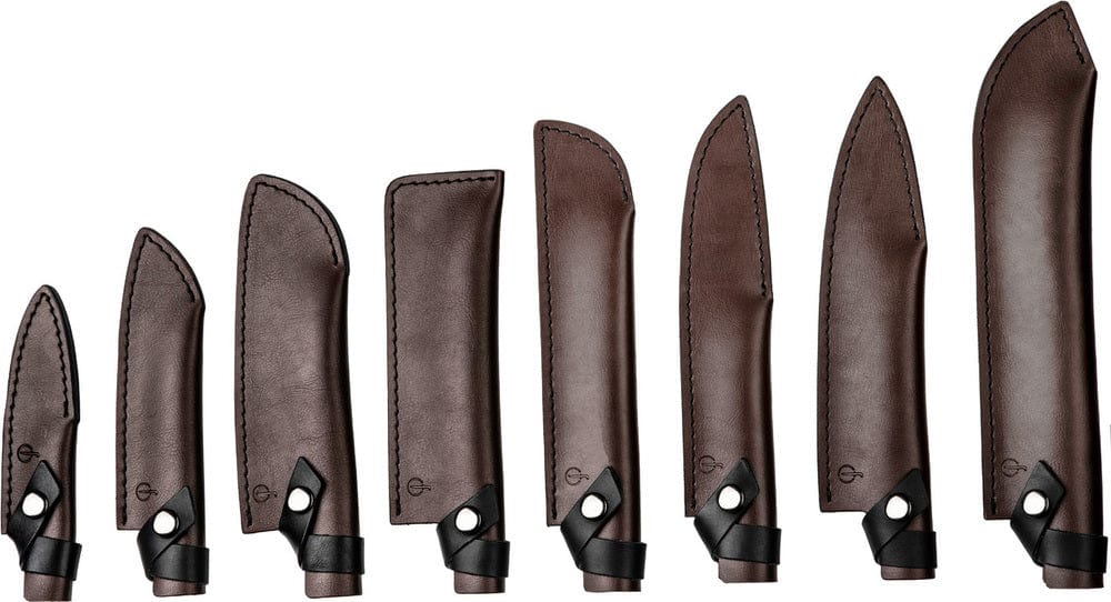 Ādas makstis nodrošina nažu drošu uzglabāšanu un pārvadāšanu.