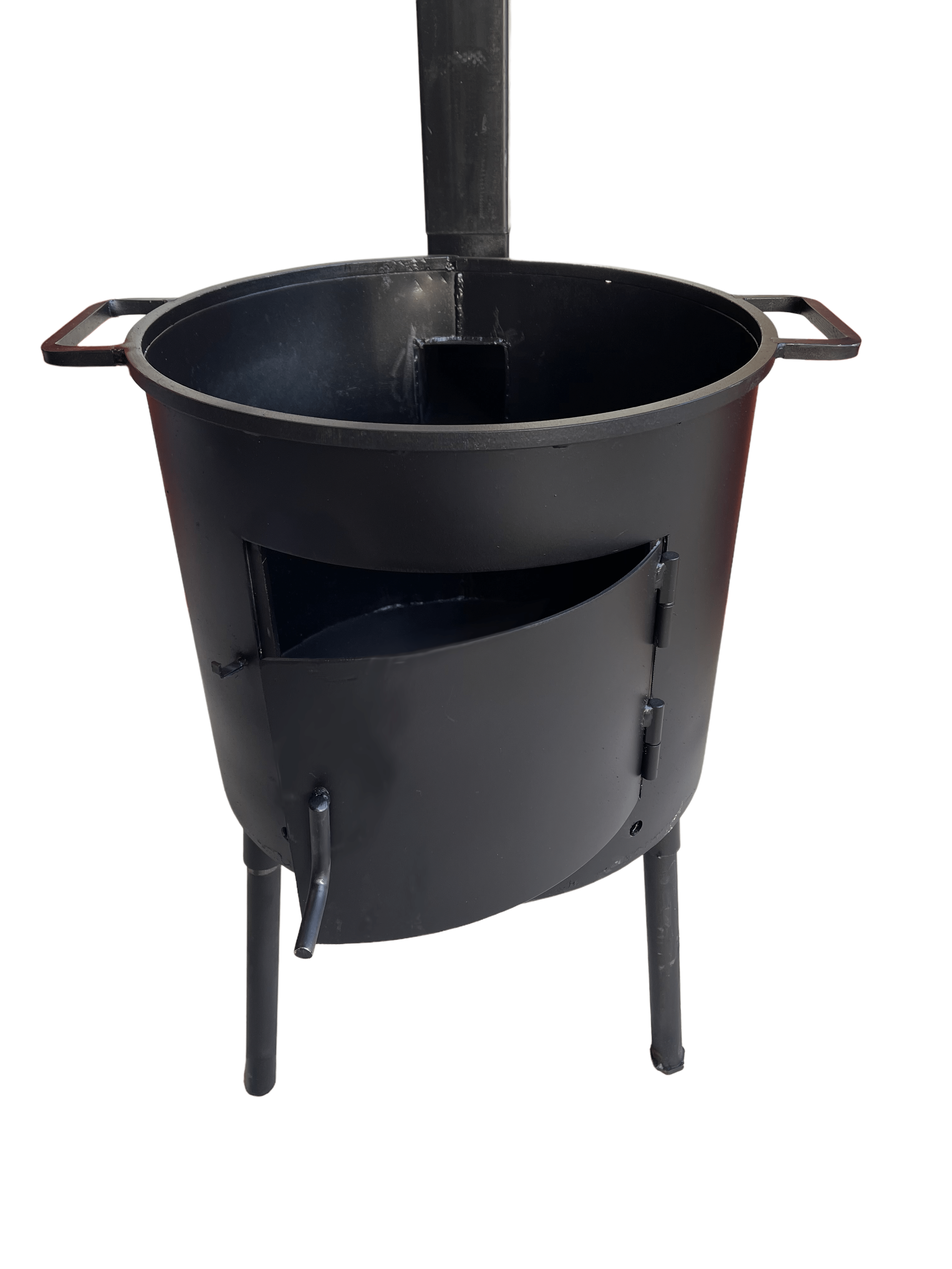 Paredzēts malkas dedzināšanai, ar gāzes degli. Kājas ir saliekamas, pieskrūvējamas. Rokturi sānos, skurstenis izjaucams. Viegli transportējams ar vieglo automašīnu.