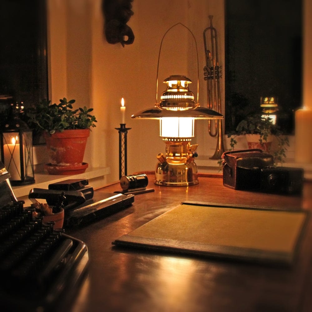 Galda lampa PETROMAX HK 500, elektriska, misiņš, augstums 40 cm, Ø17 cm
