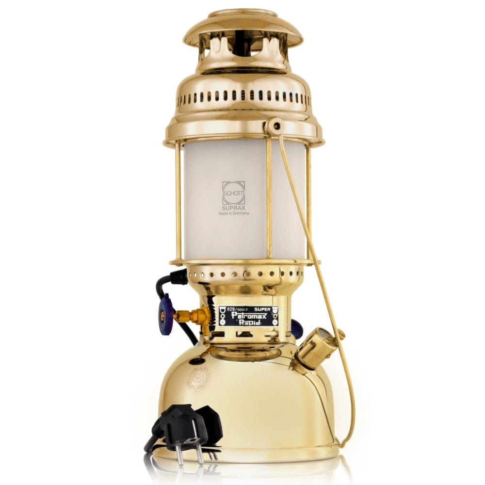 - PETROMAX elektriskā lampa izgatavota no misiņa un pulēta, stikla cilindrs ir izgatavots no augstas kvalitātes karstumizturīga matēta stikla. Suprax.
