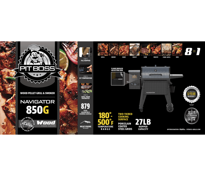 Granulu grils PIT BOSS NAVIGATOR PB850G, horizontāls