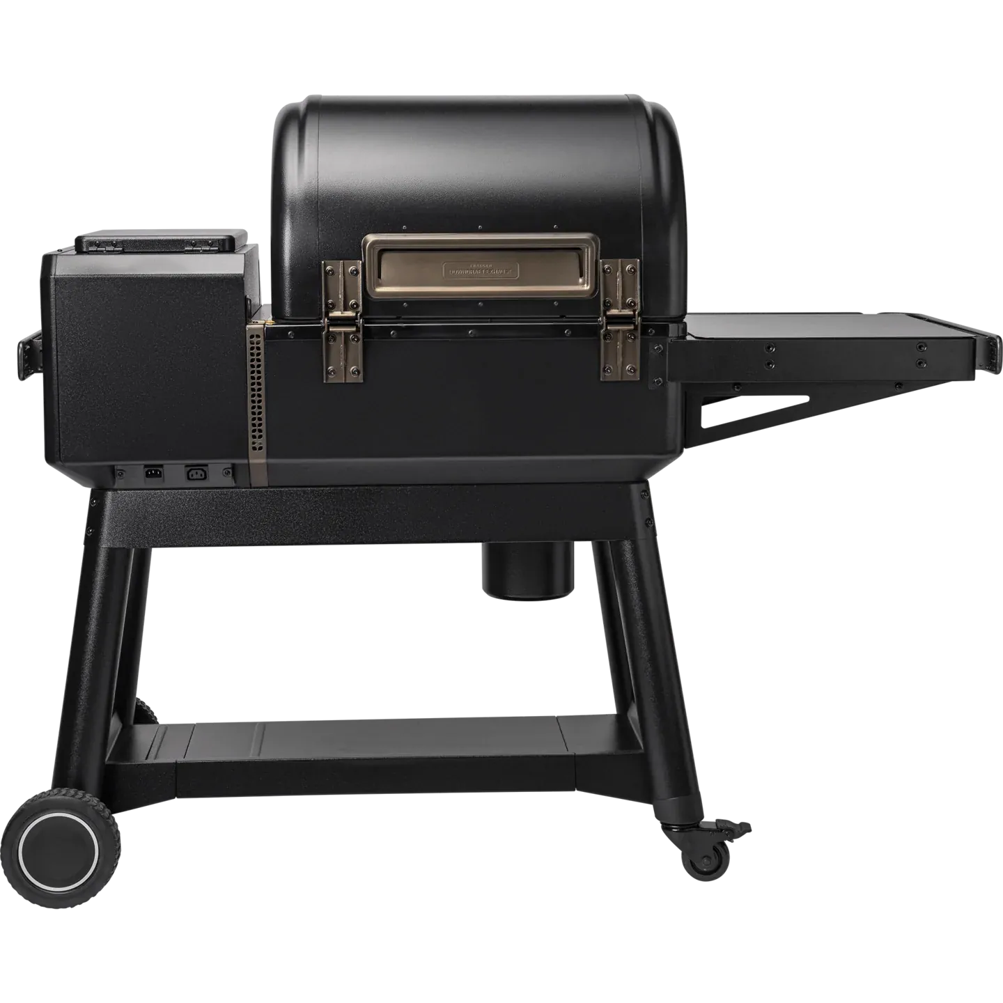 Integrēts WiFIRE® tehnoloģija ļauj attālināti vadīt grilu, izmantojot viedtālruni – regulēt temperatūru, uzraudzīt gatavošanas gaitu un saņemt paziņojumus savā tālrunī. Dubultsienu izolācija nodrošina stabilu temperatūras uzturēšanu, un Super Smoke® režīms nodrošina intensīvāku dabisko dūmu aromātu lēnai smēķēšanai. FreeFlow™ Firepot sadegšanas sistēma nodrošina tīrāku sadegšanu un mazāk pelnu.
