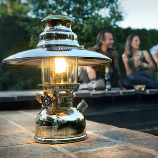 Piešķiriet savai parafīna lampai stilīgu un unikālu ar Petromax pārsegs. Šis elegantais abažūrs, kas izgatavots no tērauda un pārklāts ar misiņa pārklājumu, ne tikai uzlabo lampas izskatu, bet arī nodrošina, ka spilgtā gaisma tiek maigi izkliedēta, neapžilbinot acis un radot mājīgu gaisotni.