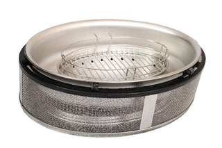 - Iekšējam traukam ir rieva, kurā varat ieliet alu, vīnu vai marinādi. Virs rievas var izvietot cepšanai sagatavotus dārzeņus. Trauka centrā ir degšanas kamera.