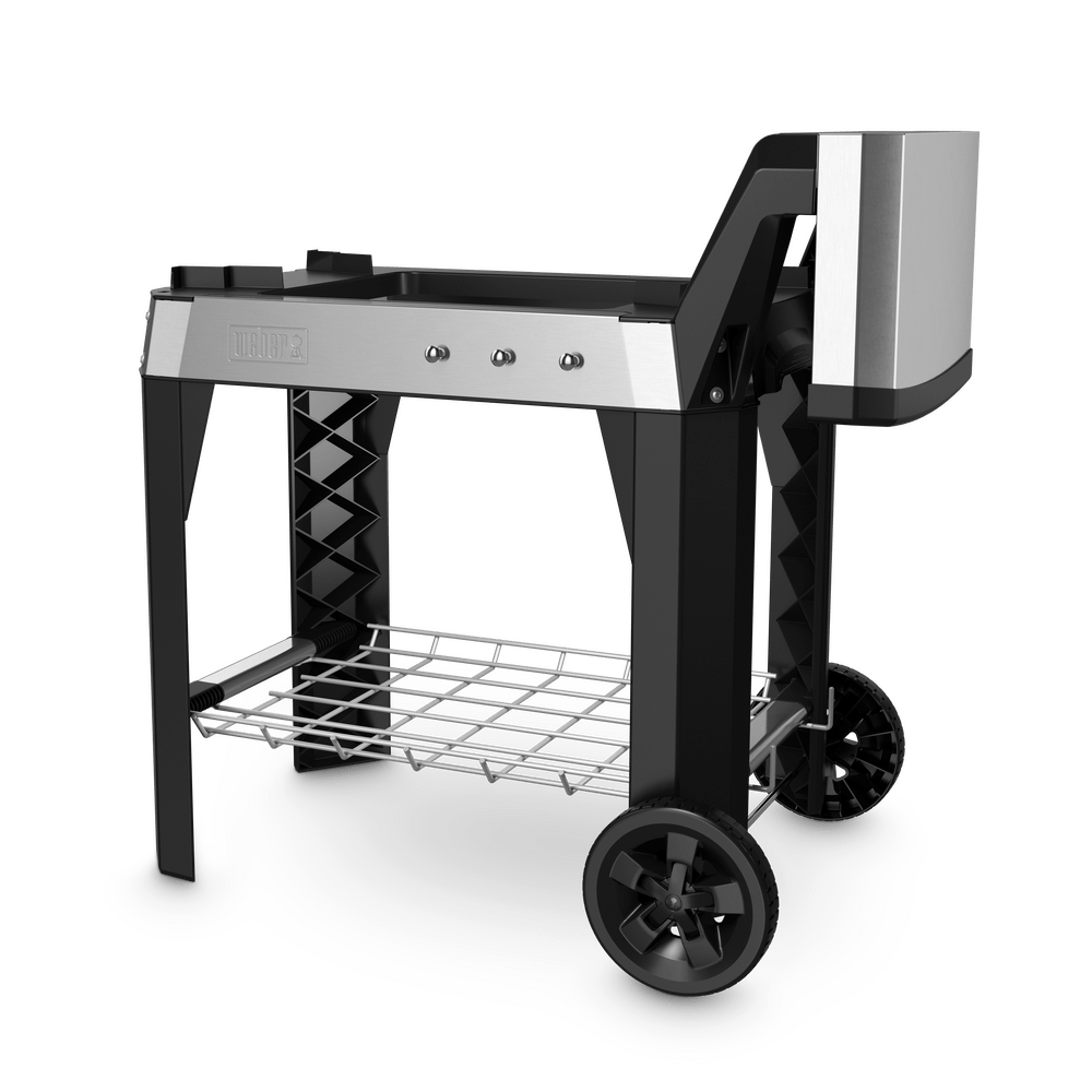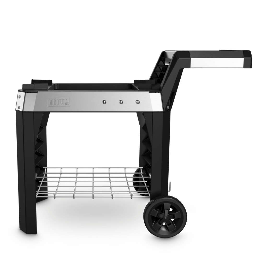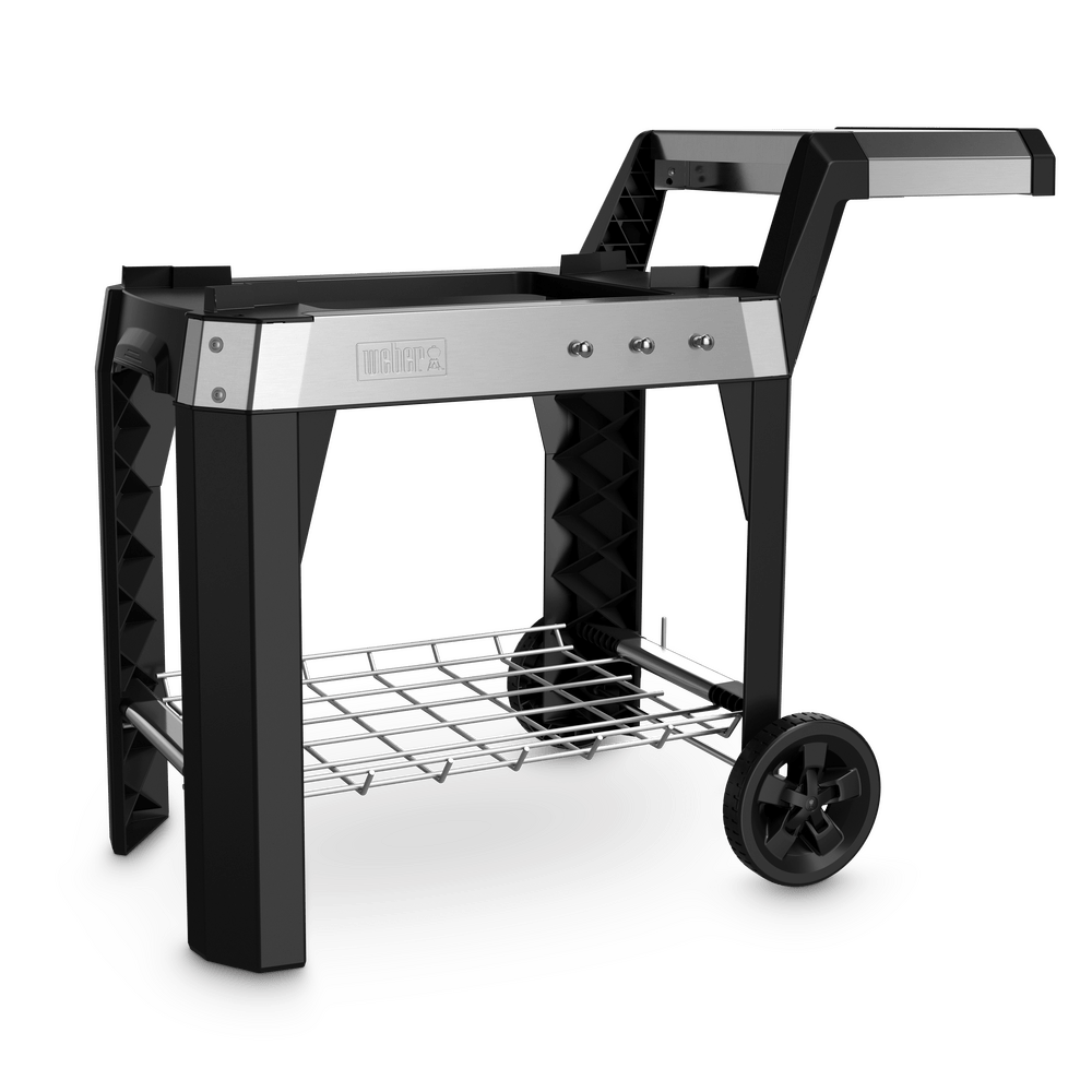 Novietojiet savu elektrisko WEBER Pulse grilu uz izturīga ratiņu statīva. Ērti grilējiet: statīvs ir optimālā gatavošanas augstumā, un lielie ritentiņi nepieciešamības gadījumā atvieglos pārvietošanu uz citu vietu.