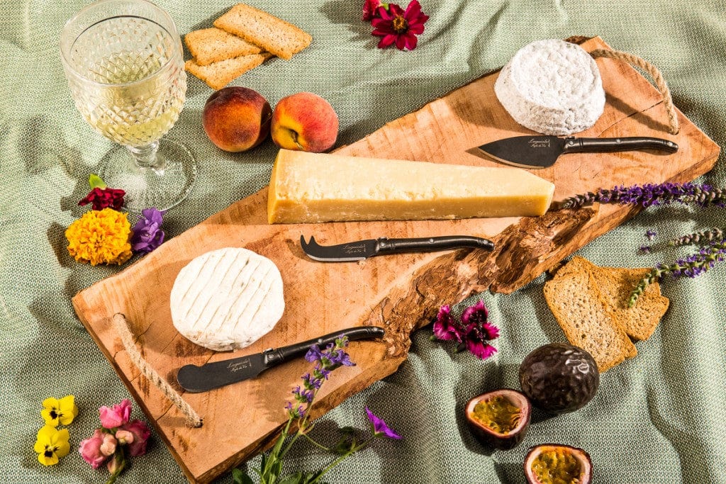 3 dažādu formu nerūsējošā tērauda siera nažu komplekts koka kastītē – lieliska dāvana siera mīļiem. Nerūsējošā tērauda nažu melnais pārklājums garantē ne tikai augstāko kvalitāti, bet arī izcilu estētisku izskatu.
