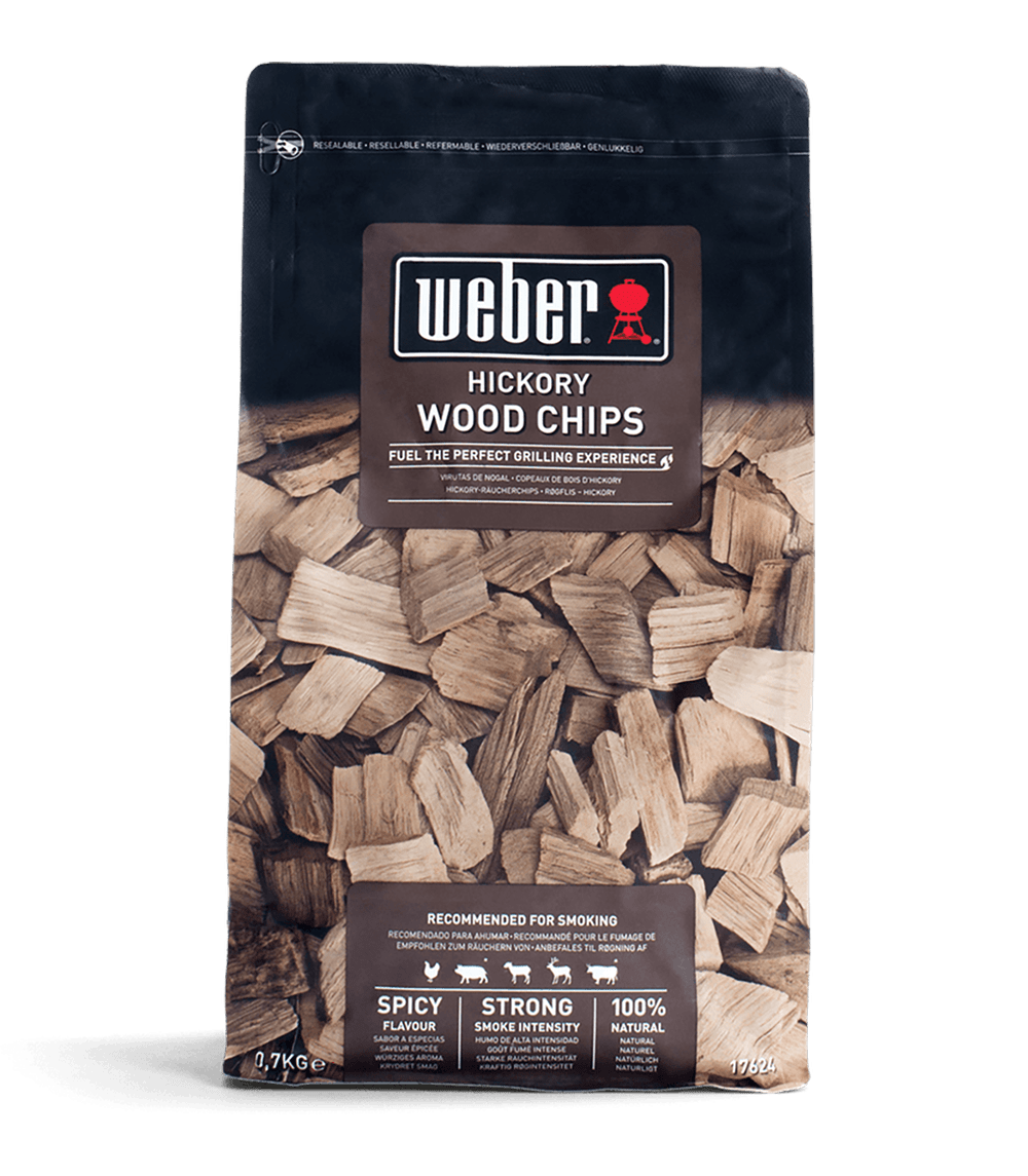 WEBER Hickory koka skaidas ar aso, intensīvo aromātu noteikti paspilgtinās sarkanās un baltās gaļas garšas īpašības – vislabāk tās noderēs cūkgaļas, liellopa gaļas, jēra gaļas, medījuma un vistas kūpināšanai.