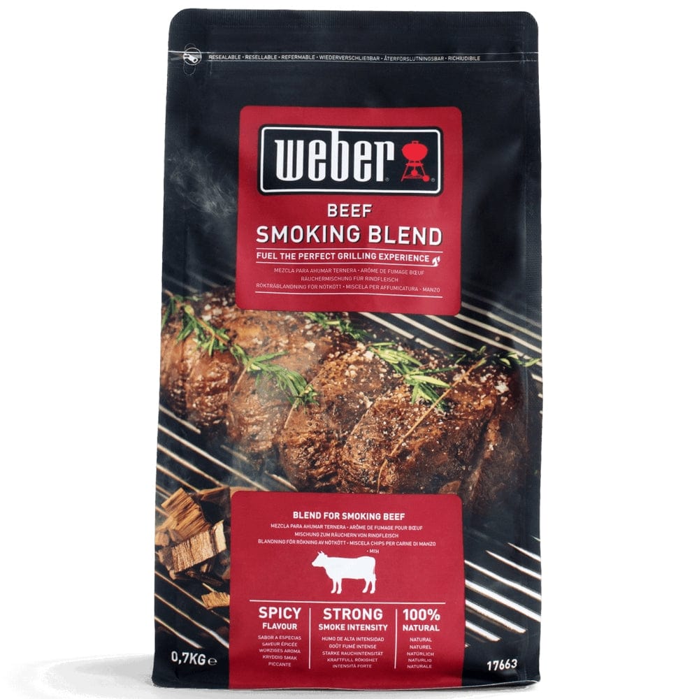 No lazdas, lapu koku un augļu koku skaidām sastāvošs WEBER koka skaidu maisījums liellopa gaļai ar spēcīgu, intensīvu, asāku garšu un aromātu ir ideāli piemērots liellopa gaļas filejas, cepešu, liellopa krūtiņas, hamburgeru un citu ēdienu kūpināšanai.