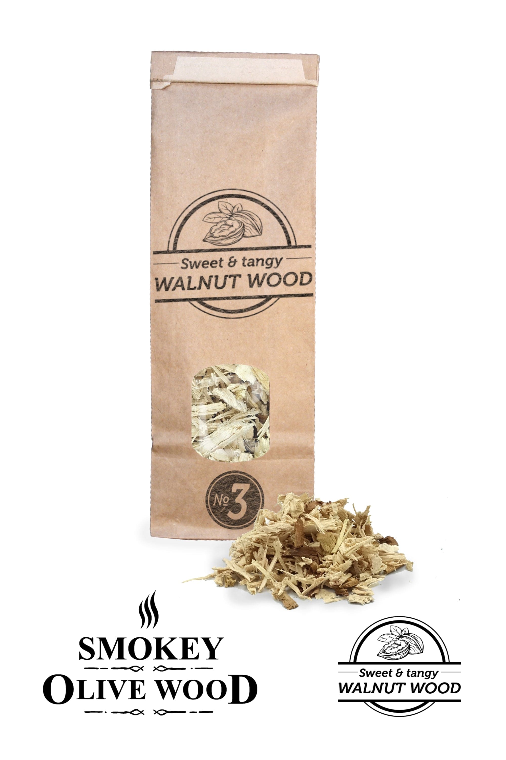 Valriekstu čipsi Smokey olīvu koks (sivēnmāte) -autentiskai smaržai, audzēto ēdienu tēlam un garšu.